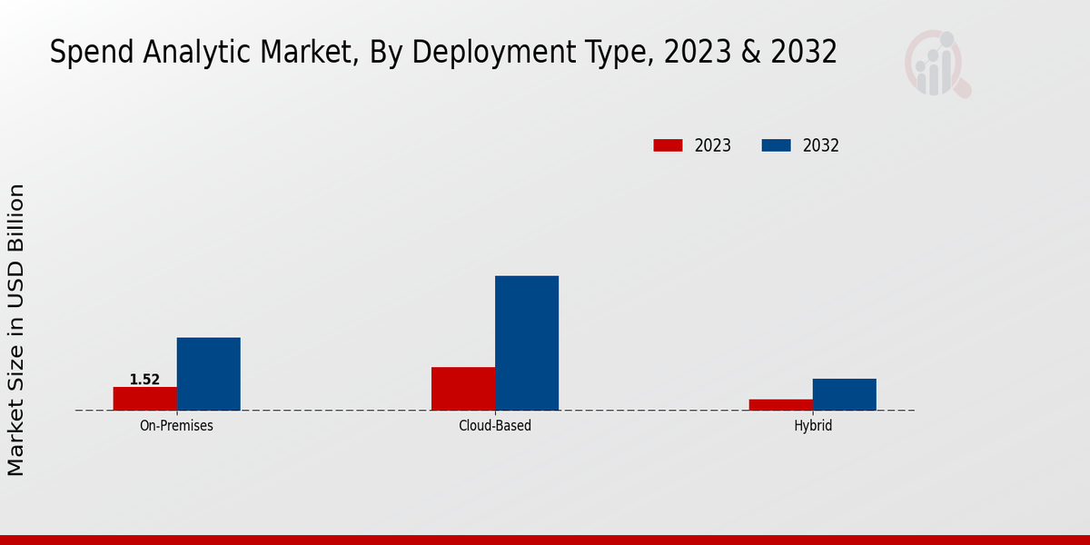 The Deployment Type segment of the spend analytic market shows a robust structure with significant financial valuations. The On-Premises deployment type stood at a valuation of 1.52 USD billion, while the Cloud-Based segment led substantially with 2.82 USD billion, demonstrating its growing relevance in today's digital landscape.